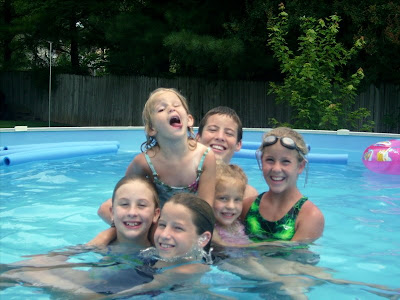 I'm so thankful for water! It's entertained my kiddos many days this summer! They're all so healthy looking from being outside...of course we have 4 varieties of sun block by the back door and in our towel bag! The girls didn't have any swim team this week because of the holiday, but that didn't keep us out of the water.
